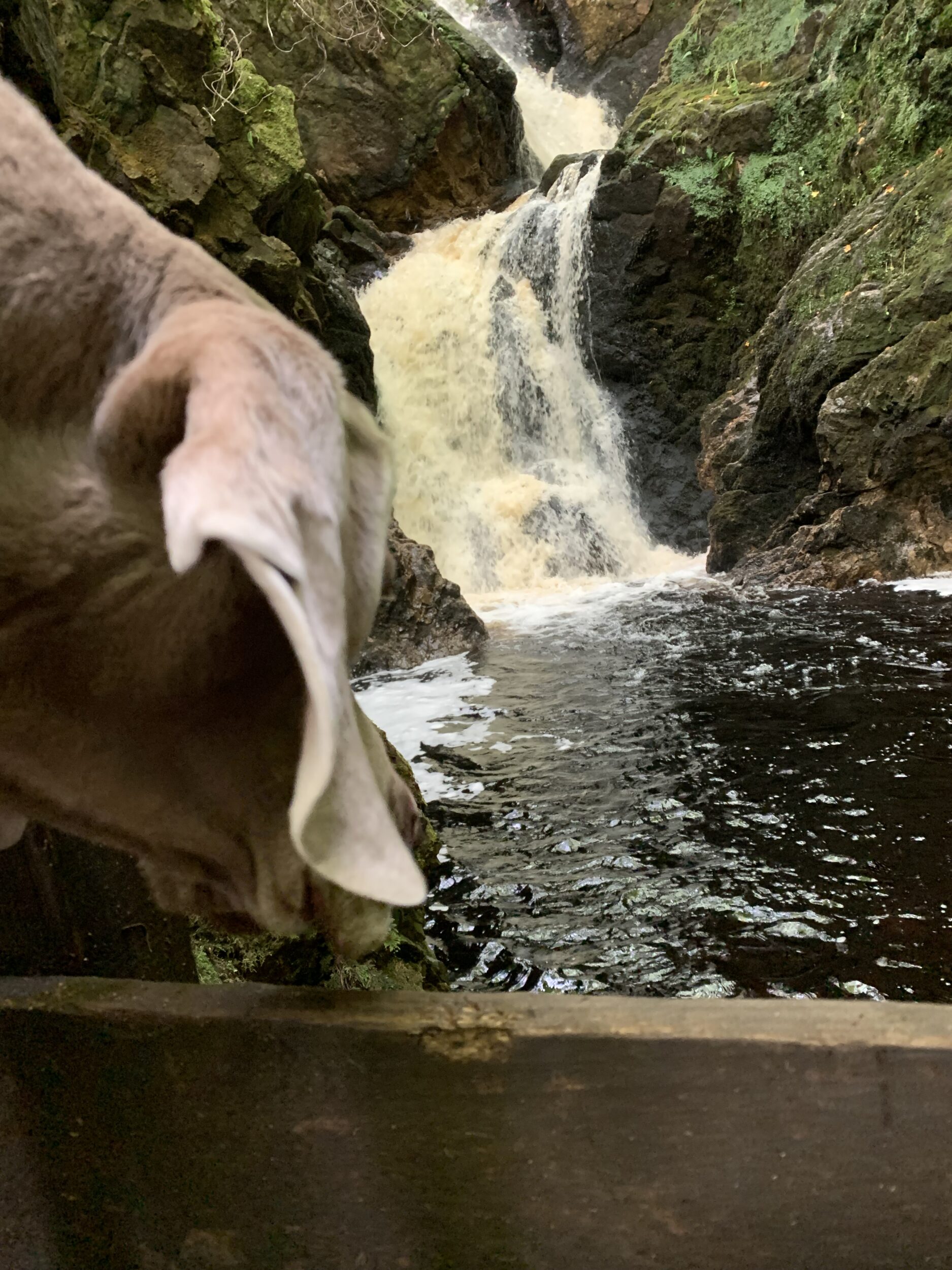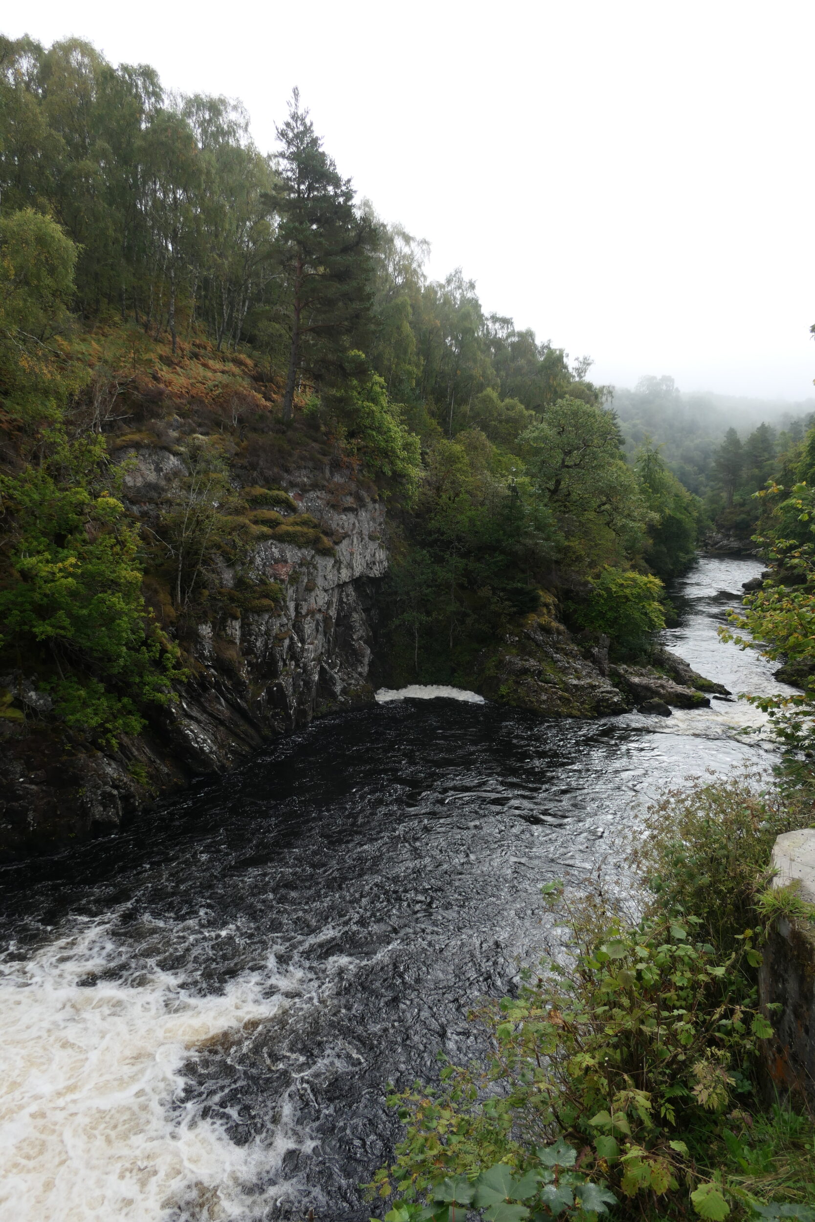 Daarna maken we opnieuw een omweg, naar Bonar Bridge. Niet heel veel bijzonders, alweer een korte stop. De volgende stop is bij “The Falls of Shin”. Watervallen op korte afstand van de parkeerplaats te bewonderen. We willen vandaag de benen wat rust gunnen na gisteren. In de aantekeningen hadden we staan “toeristisch?”. We hadden geluk, het bezoekerscentrum etc. was gesloten, dus het was heerlijk rustig. Ook hier hadden we zalm kunnen spotten, helaas zijn we daarvoor iets te laat in het seizoen blijkt nu. Deze zijn tussen mei en september het best te bewonderen. Het was wel een mooie plek en een mooie waterval, dus we zijn blij dat we het gezien hebben. Om bij de waterval te komen liepen we ca 30/40 meter naar beneden en later weer omhoog. Hier voelen we de beentjes goed… Spierpijn lopen we er vandaag wel weer uit.