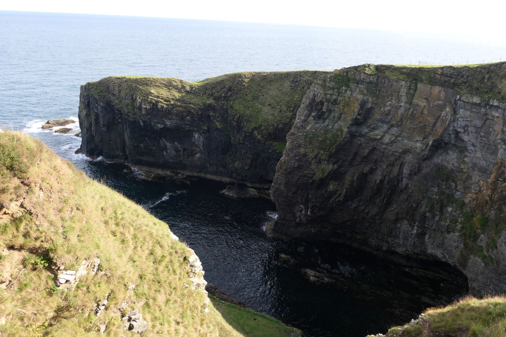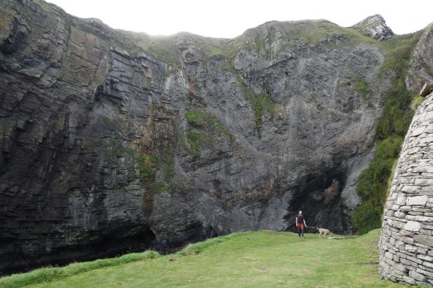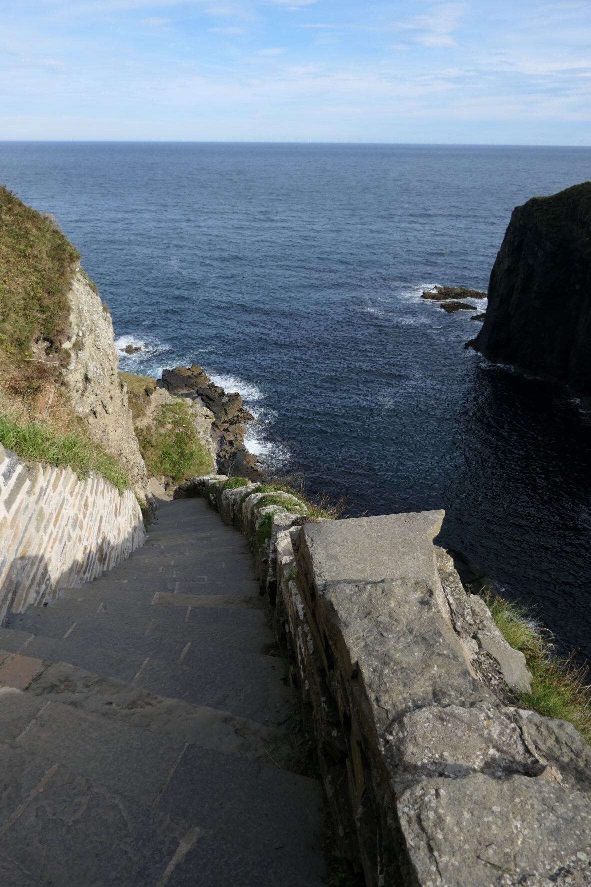 Vorige tussenstops lagen allemaal vrij dicht bij elkaar, elke keer een paar minuten tot 20 minuten rijden. Nu kunnen we ff een stukje (een uur) doorrijden naar de volgende tussenstop; “Whaligoe Steps”. Dit is een trap waarmee je vanaf de klif helemaal naar beneden (ca 70 mtr) naar de zee afdaalt. Deze trap is zo’n 350 jaar geleden gemaakt om materiaal van schepen aan land te krijgen. De moeite waard om beneden te zien. Pics or didn’t happen ;-). De trap terug omhoog was wel even pittig met de spierpijntjes…..