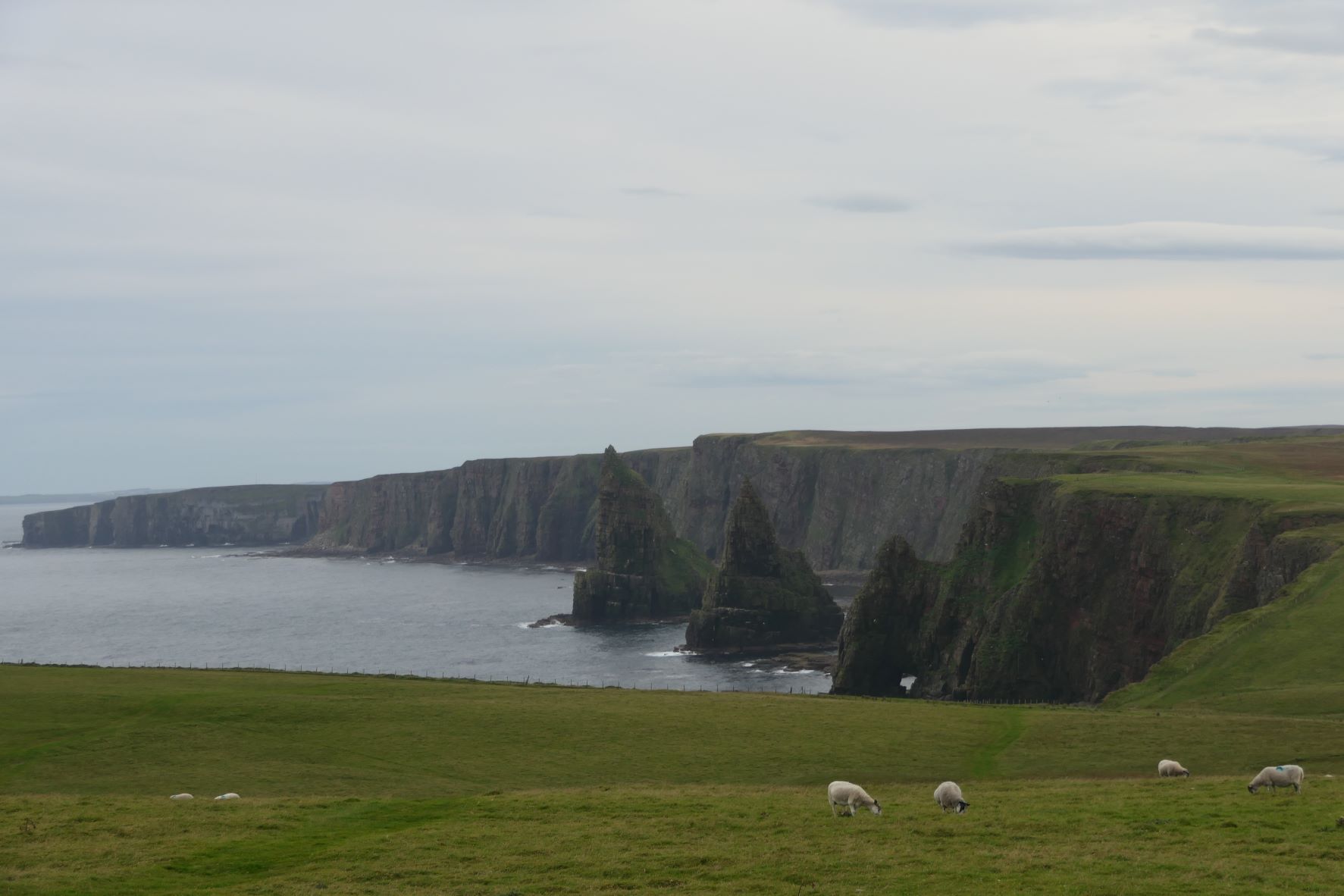Het is inmiddels rond half 5, prachtig weer nog steeds en er staat nog een kasteel op de lijst om van buiten te bekijken. We weten dat het weer morgen in ieder geval een stuk minder zal zijn en besluiten dat dat kasteel ook morgen wel kan. We kiezen een wandeling van een van de volgende dagen om vandaag vast te doen in dit mooie weer. We rijden naar John O’ Groats Lighthouse om te wandelen naar “Duncansby Head” en “Duncansby Stacks”. We wandelen 3 km met 90 hoogtemeters en het is er prachtig.