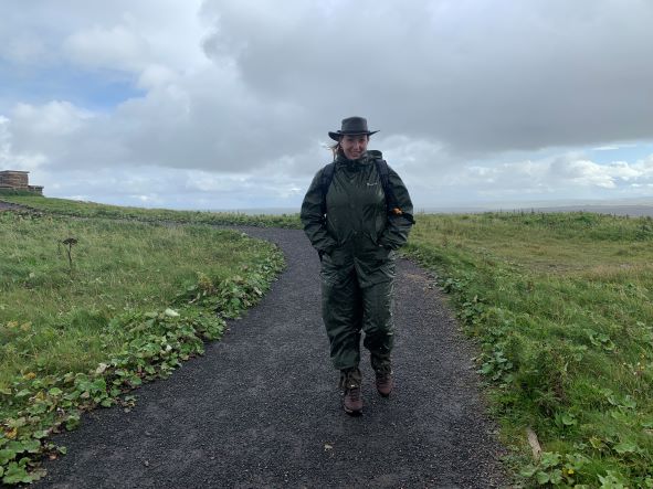 Het weer is erg wisselvallig vandaag. Het waait de hele dag behoorlijk, daar is weinig wisselvalligs aan, maar het ene moment schijnt de zon met een blauwe lucht met een paar wolkjes en het andere moment komt het met bakken uit de hemel naar beneden. Omdat we ook een klein wandelingetje willen maken naar een uitzichtpunt verderop gaat Petra in vol ornaat regenkleding, gelijk om uit te testen of dat te doen is. Het blijkt niet voor niks, op de terugweg naar de auto regent het keihard. Het regenpak is goedgekeurd!