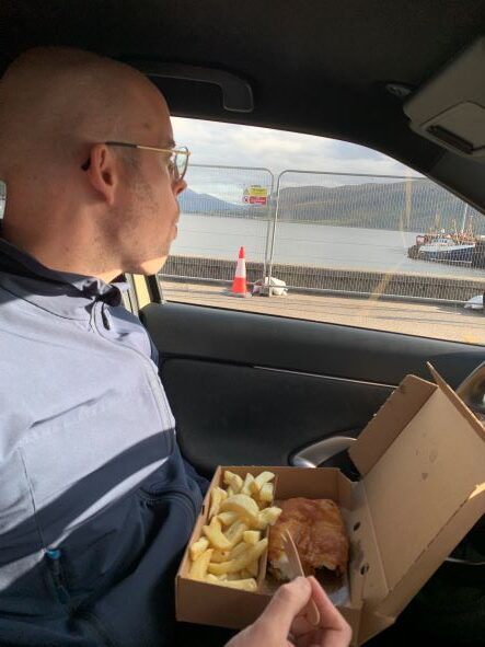 Rond een uur of 3 arriveren we in een dorpje Ullapool, hier hadden we een restaurantje op het oog, The Seaforth, dat bekend staat om de goede fish & chips. We halen het af, en omdat het buiten behoorlijk waait, eten we het in de auto op. Nou, dit was echt lekker, niet voor niks een aanrader op internet/facebook! Ook shoppen we hier even en scoren een paar leuke souvenirs, leuke winkeltjes met meer dan alleen het standaard souvenirsassortiment.