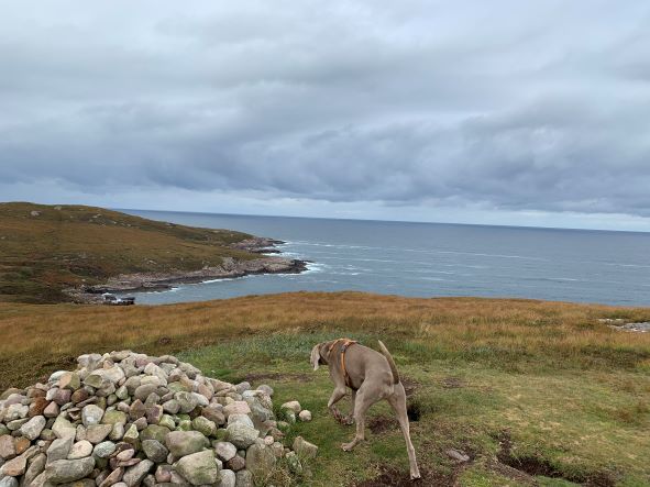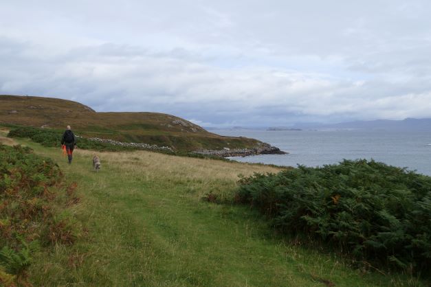 We maken bij Mellon Uldrigle een wandeling langs de kust van 4,5 km met 130 hoogtemeters.