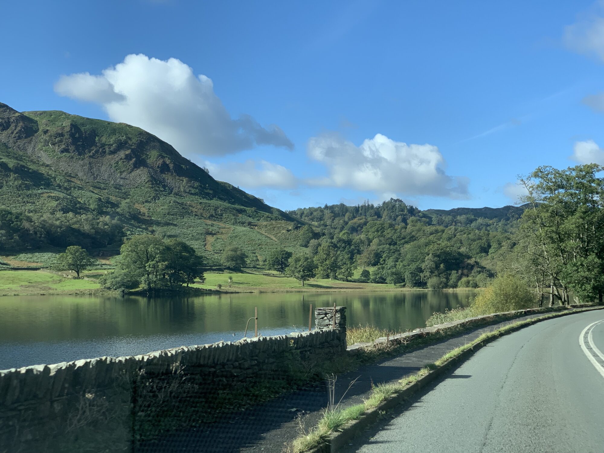 Op weg naar Buttermere komen we weer op slingerweggetjes terecht en dalen we op een plek af van een helling van 25%. Mooie groene omgeving ook weer hier en wat ‘zachter’ ogend dan Schotland. Tussen de bergen in over slingerweggetjes, daar hebben we meer van gedaan de afgelopen weken! Schapen over de weg, komt wel goed.
