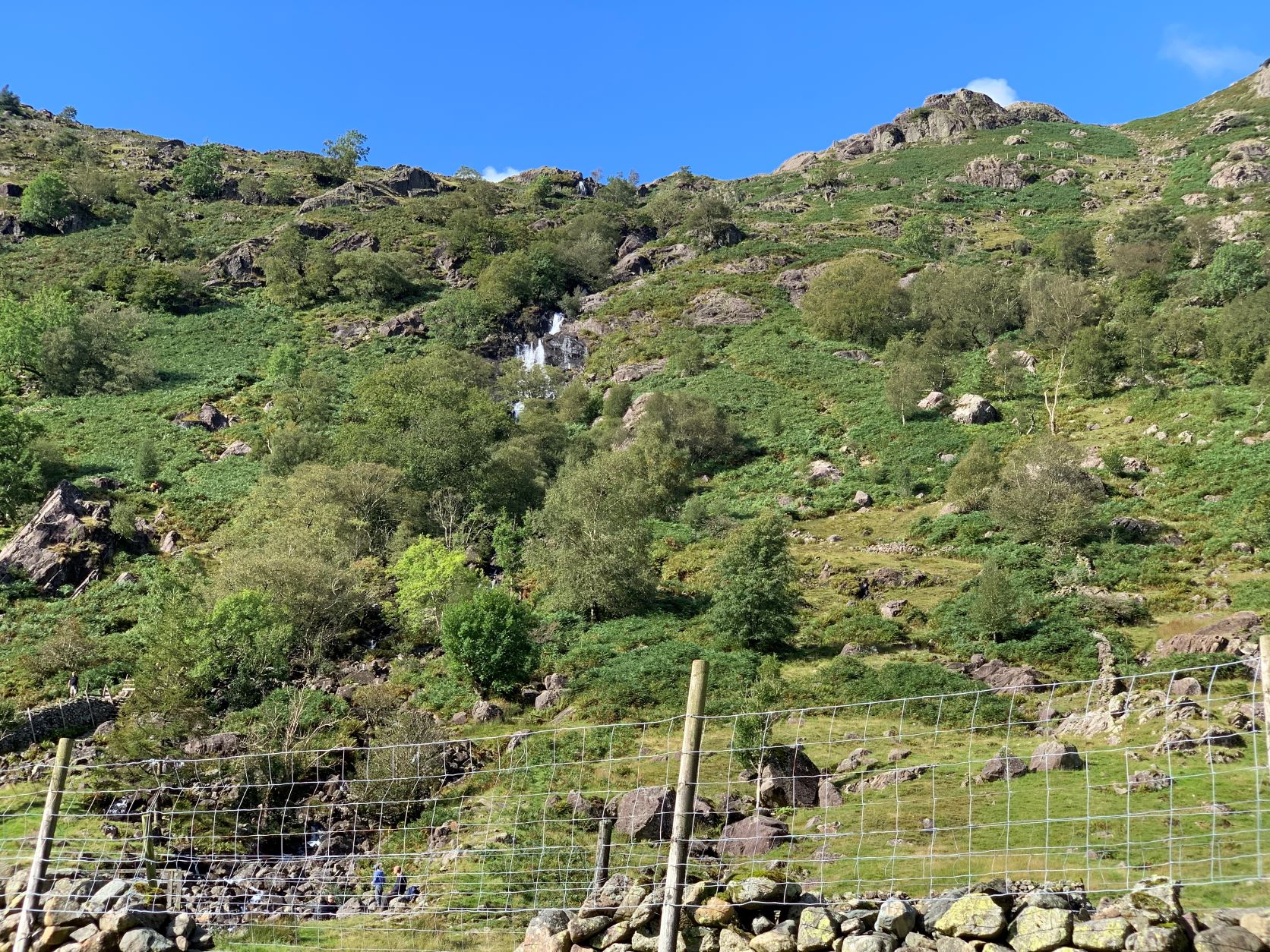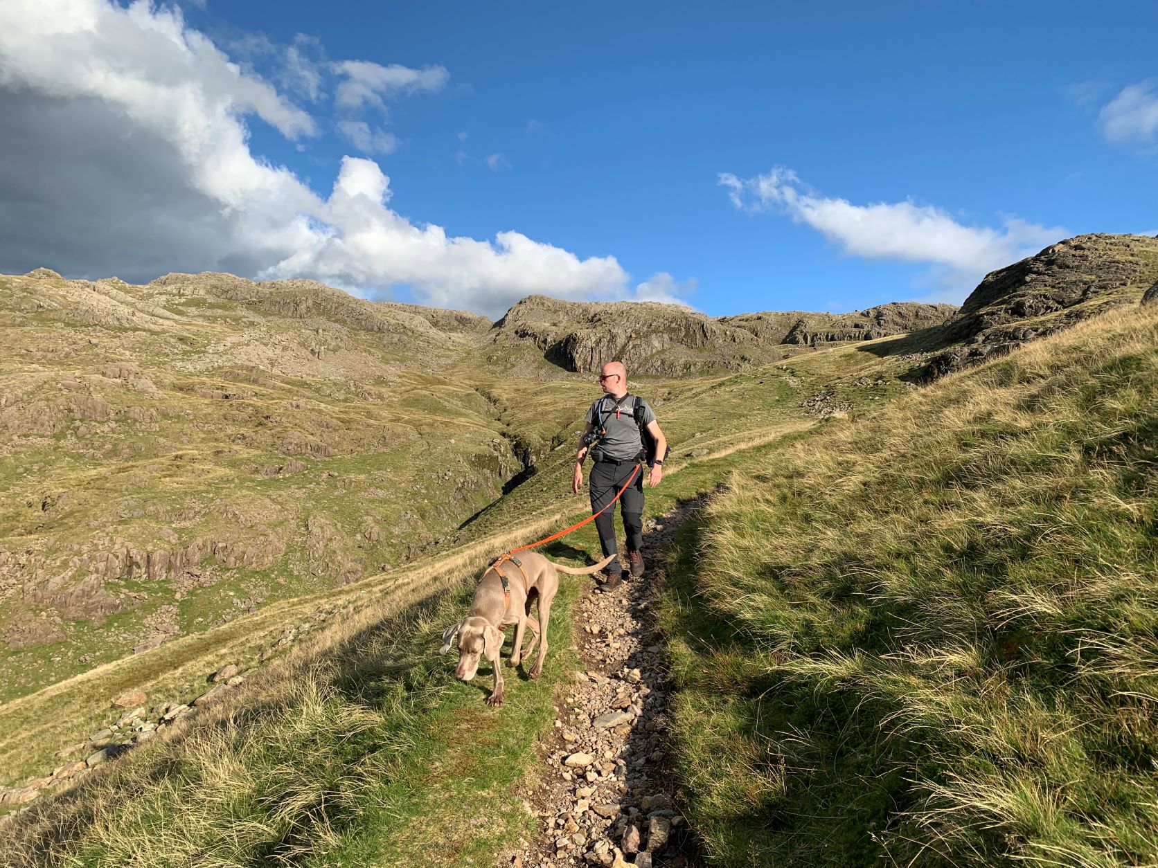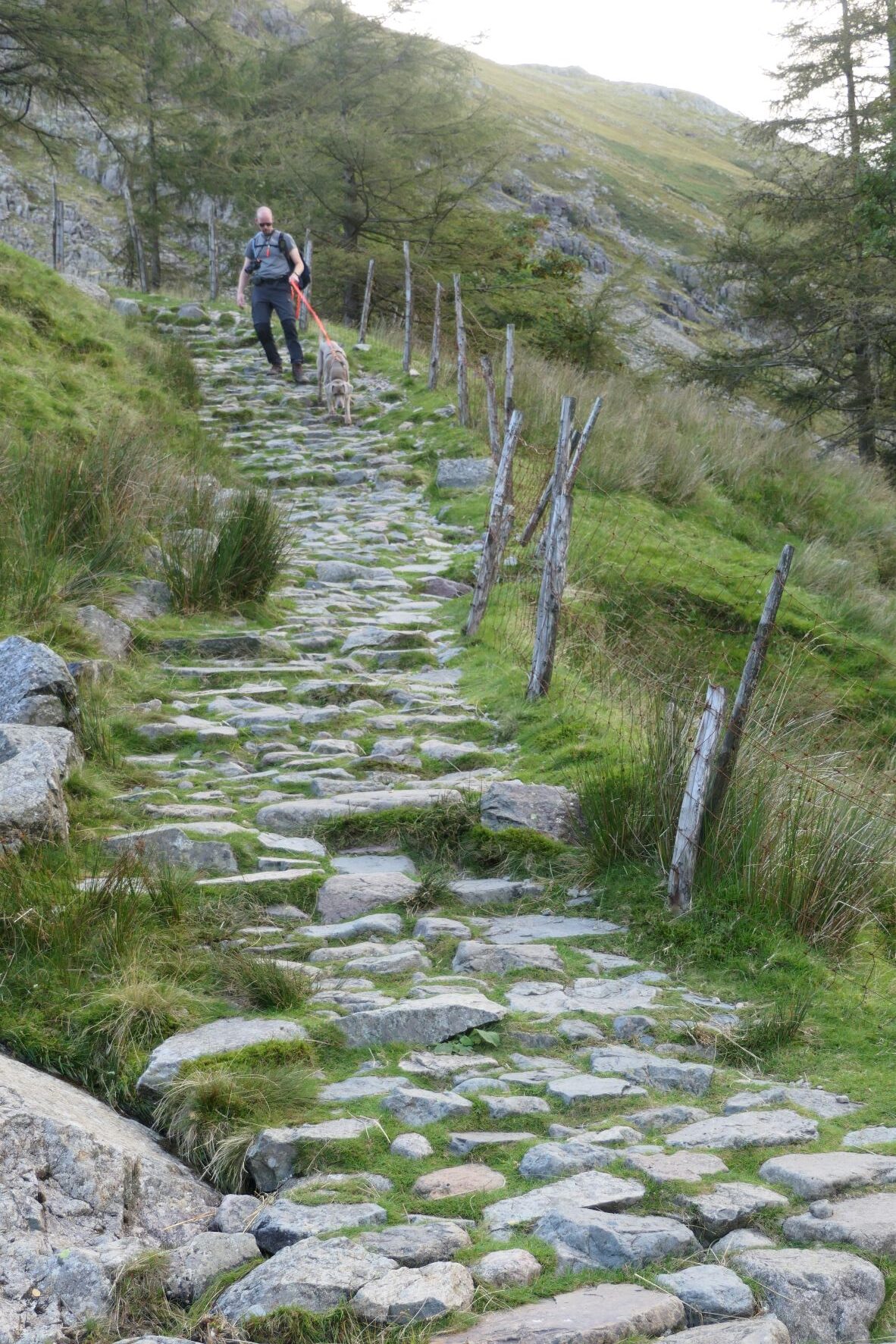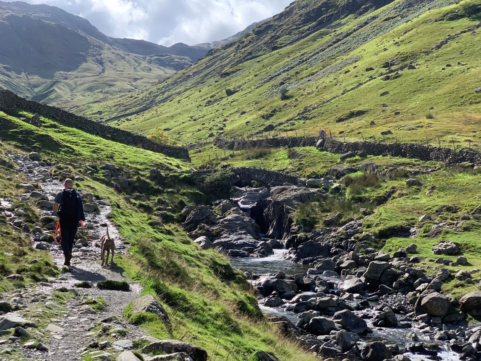 We gaan onderweg naar Scafell Pike, de hoogste berg in Engeland waarvan de top ligt op bijna 1000 meter. We starten op een hoogte van ca. 150 meter en moeten om daar te komen dus 850 hoogtemeter overbruggen. Uit de verschillende routes omhoog hebben we een vrij lange gekozen (17km) omdat de andere routes of te uitdagend waren (vraag of Silver daar überhaupt mee zou kunnen) of veel te steil 850 hoogtemeter in 4,5 km, bijna continu een stijgingspercentage van 35-40%.