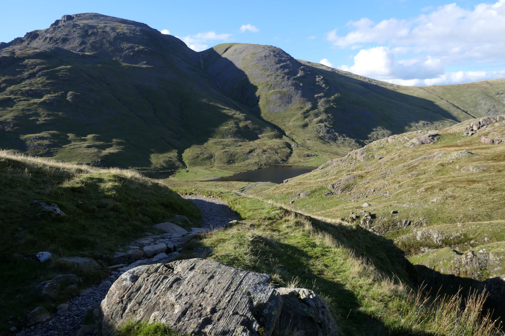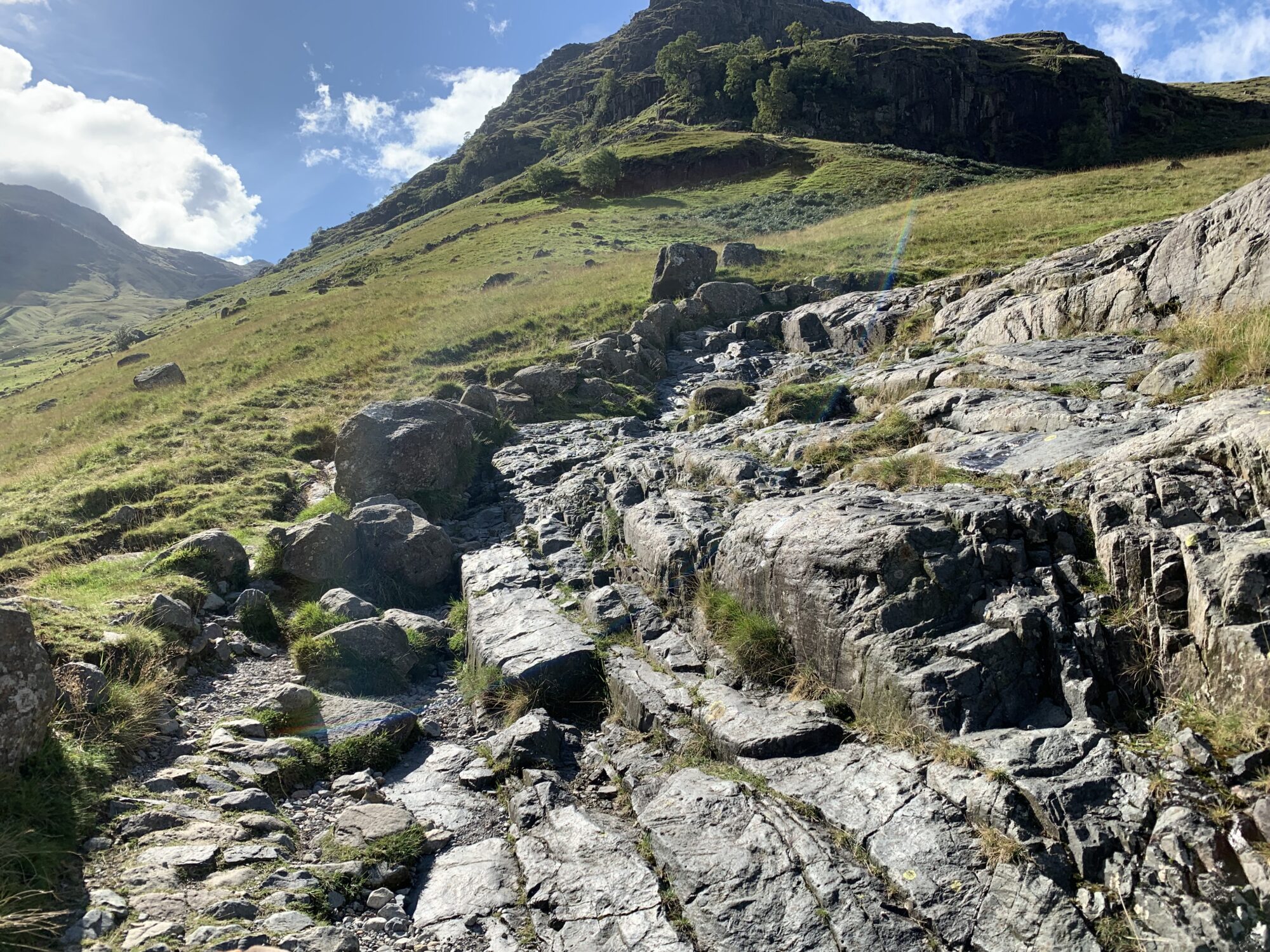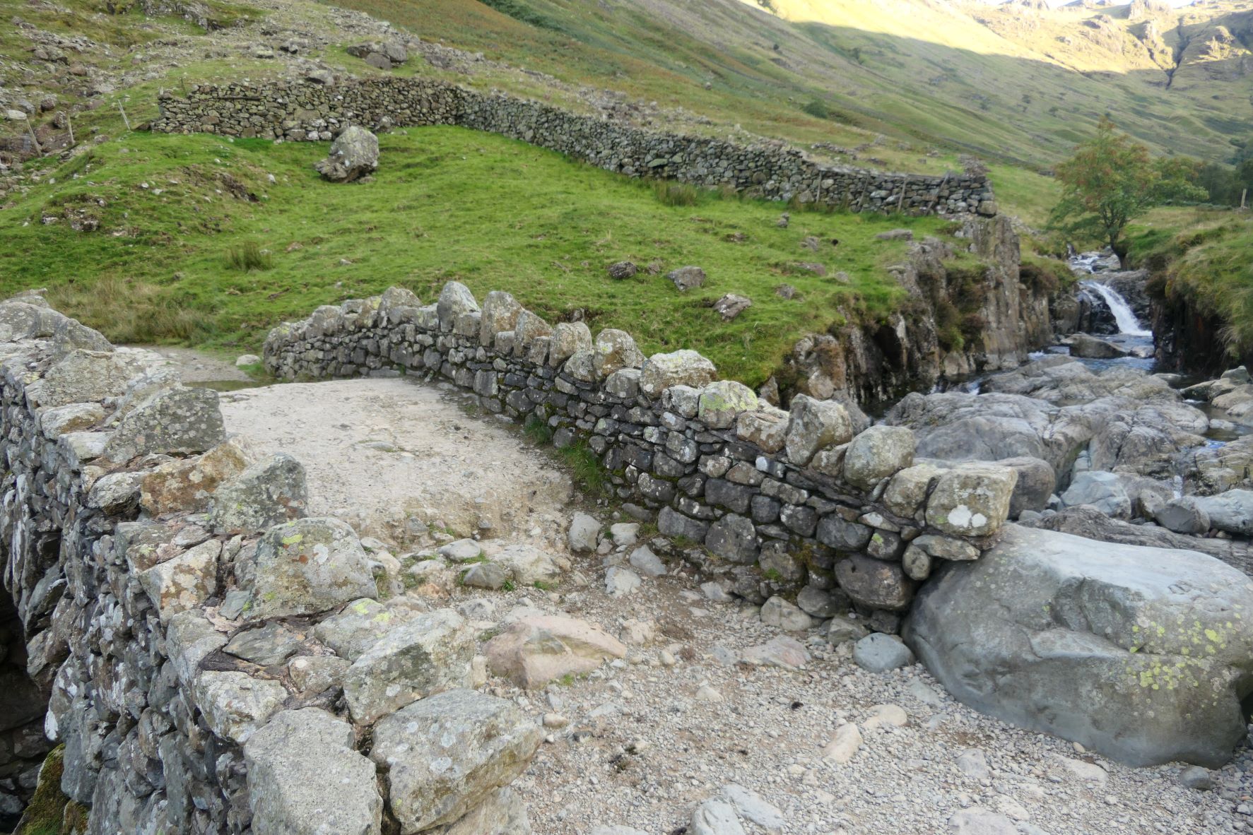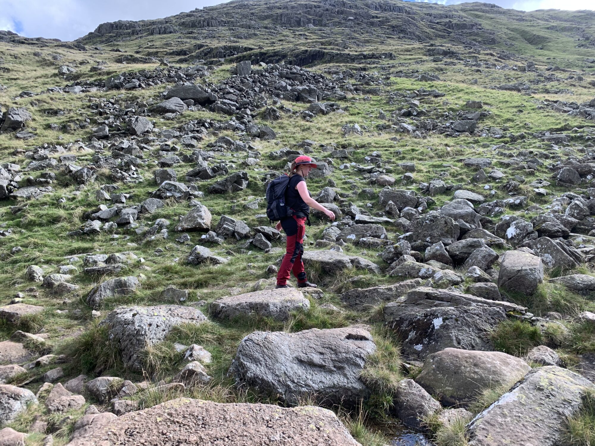 We gaan onderweg naar Scafell Pike, de hoogste berg in Engeland waarvan de top ligt op bijna 1000 meter. We starten op een hoogte van ca. 150 meter en moeten om daar te komen dus 850 hoogtemeter overbruggen. Uit de verschillende routes omhoog hebben we een vrij lange gekozen (17km) omdat de andere routes of te uitdagend waren (vraag of Silver daar überhaupt mee zou kunnen) of veel te steil 850 hoogtemeter in 4,5 km, bijna continu een stijgingspercentage van 35-40%.