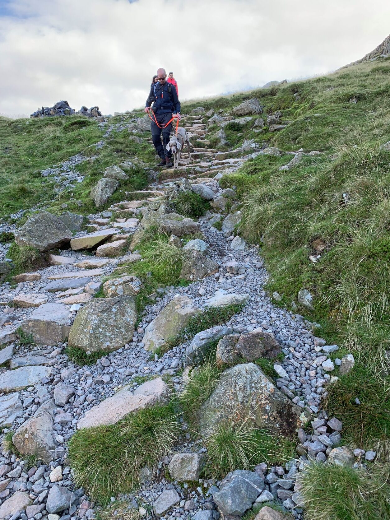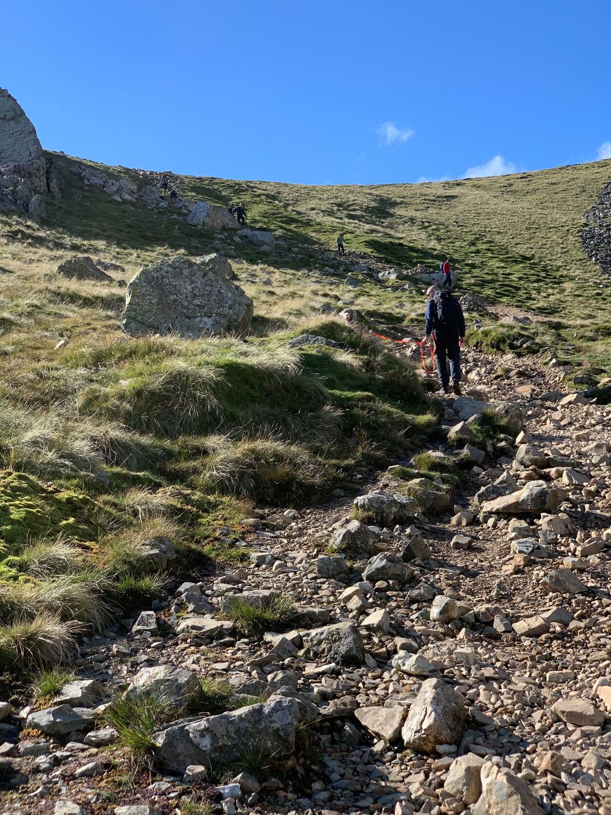 Onze combinatie bestaat uit een klipmaraner, een klipklimmer en een klipdaler. Silver redt zich (bijna) overal prima, Martijn loopt vrij makkelijk omhoog en Petra daalt vrij snel en behendig af. Kortom bij het stijgen wacht Martijn Petra regelmatig op en Petra wacht bij het afdalen op Martijn, zo gaat de hele route in een gemiddeld langzaam tempo. Het terrein is op veel plekken aardig ruig met veel keien en stapels met stenen geven soms aan waar het pad zich zo’n beetje bevindt.